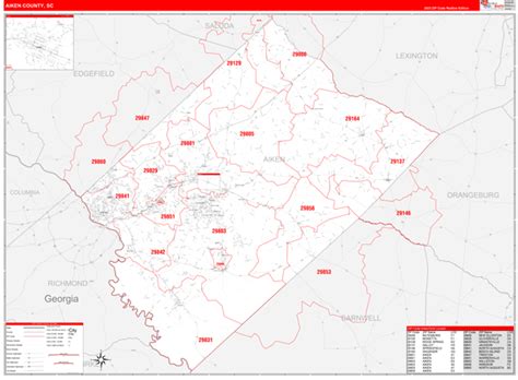 Aiken County Zip Code Map, South Carolina
