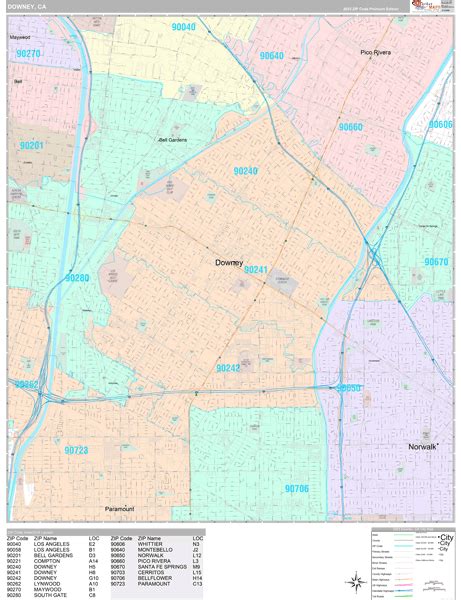Downey California Zip Code Wall Map (Red Line Style) by MarketMAPS