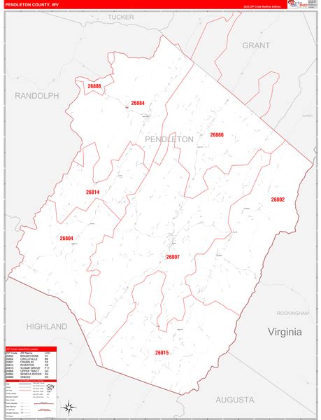 Pendleton County, WV Zip Code Wall Map Basic Style by MarketMAPS MapSales