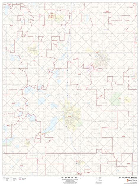 Rice County, MN Zip Code Wall Map Red Line Style by MarketMAPS