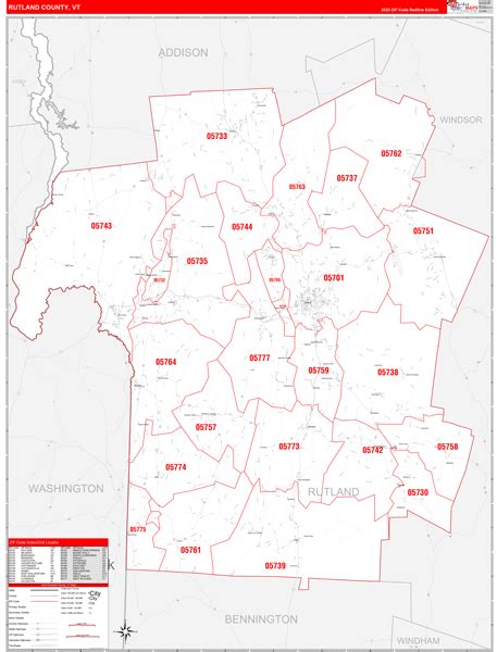 Rutland County, Vermont VT ZIP Code Map Not Laminated